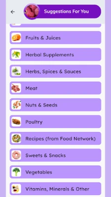 • Food Suggestions. The best food choices within a food group, based on your personal profile. An extremely valuable tool when at restaurants or when grocery shopping. Over 850 natural food items and growing number of recipes are included.