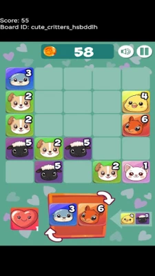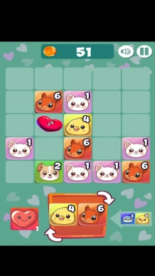 The screen is full of cute pet blocks, including kittens, ducklings, lambs, etc. You need to move the blocks to merge the blocks with the same pets and numbers, and constantly synthesize higher numbers to accumulate scores. As you merge, the score gradually increases, and there are also props such as hearts to help. In the fresh and lovely picture, experience the relaxed and happy fun of elimination and synthesis, challenge higher scores, and start a cute elimination journey