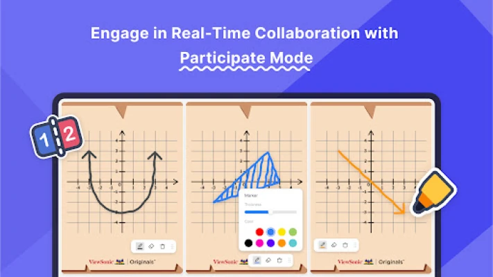 Visualize ideas using the document camera and image search, bring subjects to life with the YouTube viewer and animated widgets, and get interactive with ViewSonic Originals content, pop quizzes, polls, math tools, and customizable 3D dice.