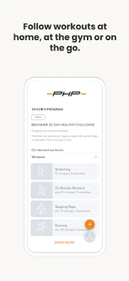 With the PHP App, you will have access to individualized workout programs designed specifically to help you reach your fitness and health goals! You can follow & track your workouts, your nutrition, your lifestyle habits, measurements and results–all with the help of your coach.